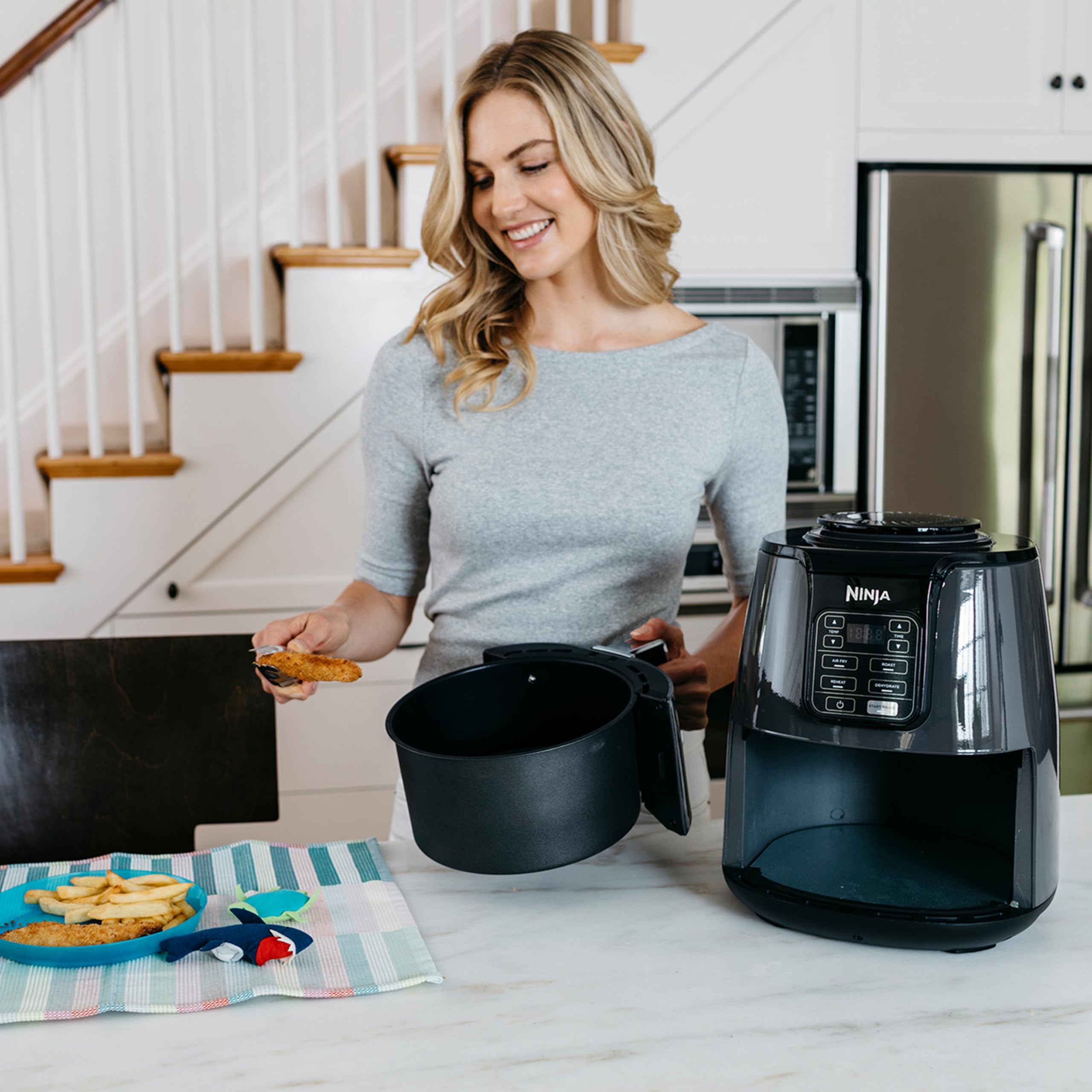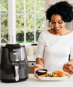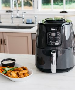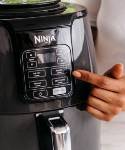 - INCLUS: Ninja Foodi Air Fryer , Panier de 3,8 L Antiadhésif et Compatible avec le Lave-Vaisselle, et Plaque Croustillante. Guide de Recettes Créées par des Chefs. Couleur : Gris/Noir