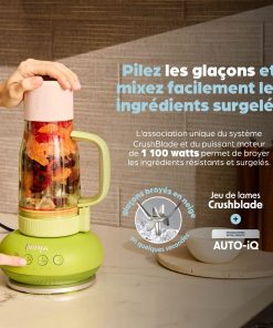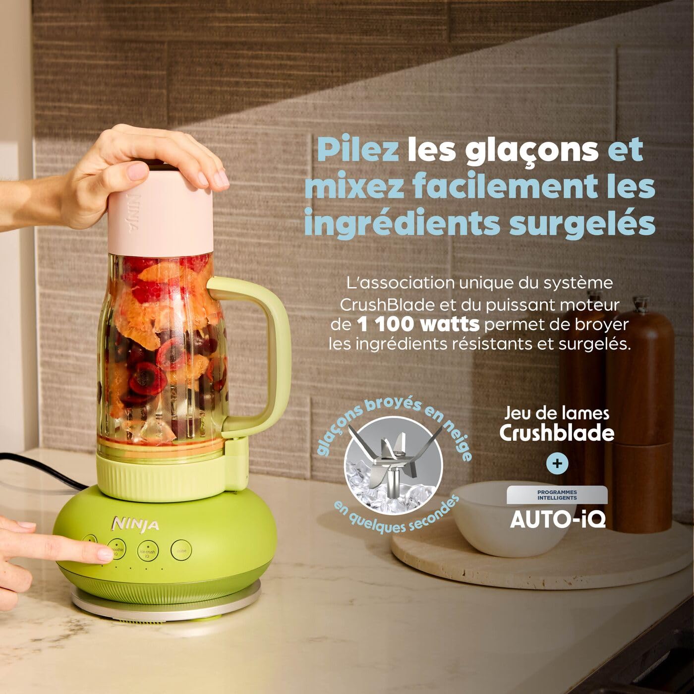 - MIXAGE INDIVIDUEL PUISSANT : Un moteur robuste de 1 100 watts entraîne les lames CrushBlades de votre blender portable pour piler la glace et broyer les fruits, les légumes ainsi que les graines frais et surgelés
