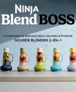 - COMPREND : Blender avec base motorisée de 1 100 W, mug de voyage BlendBoss avec couvercle et paille amovible, lames CrushBlade et livret de recettes. Dimensions : H 32 x l 18,3 x P 29 cm. Poids : 2,6 kg. Couleur : Cyberspace