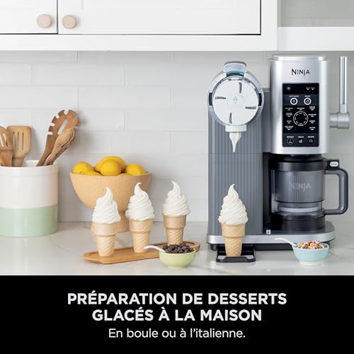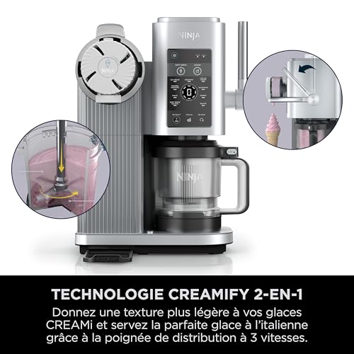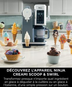 NINJA CREAMi Scoop et Swirl Machine a Glace et Sorbetière, 13 modes, Machine a glaces l’italienne Intégré, Avec 2 pots, Pièces Amovibles Lavables au Lave-Vaisselle, Gris platine NC701EU