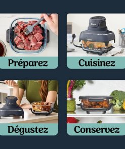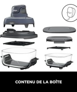 - INCLUT : Base moteur 1 700W (prise UE), 2 récipients en verre lavables au lave-vaisselle (1,4L et 3,8L), 2 plaques antiadhésives, 2 couvercles de conservation. H : 34,5cm x L : 30,4cm x P : 34cm. Couleur : Gris