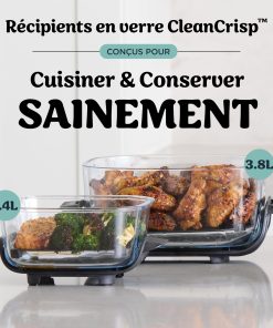 - Surface en verre non-poreuse, facile à nettoyer : Les récipients en verre CleanCrisp sont compatibles au lave-vaisselle et facile à nettoyer