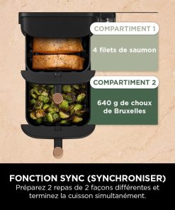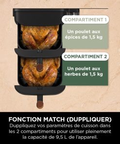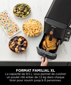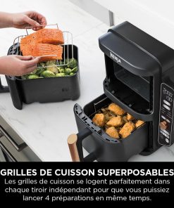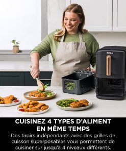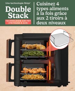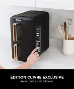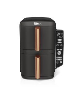 NINJA Double Stack XL Air Fryer 2 Compartiments Verticale, Compact, 4 Niveaux de Cuisson, Capacité de 9,5L, Air Fryer 6-en 1, Pièces Antiadhésives Amovibles Lavables Au Lave-Vaisselle, Noir/Cuivre