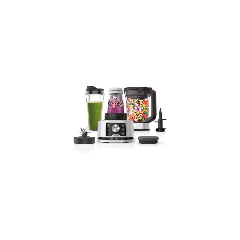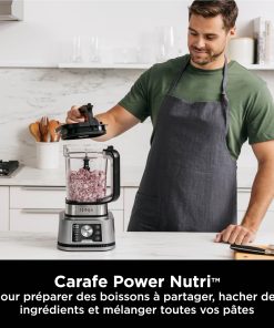 - INCLUT: Ninja Power Nutri Blender 1200W (EU Plug), bol de 400ml avec Power Paddle, couvercle de rangement, tasse de 700ml avec couvercle à bec, lames Hybrid Edge, pichet de 2.1L avec couvercle, lame de broyage total, outil à pâte
