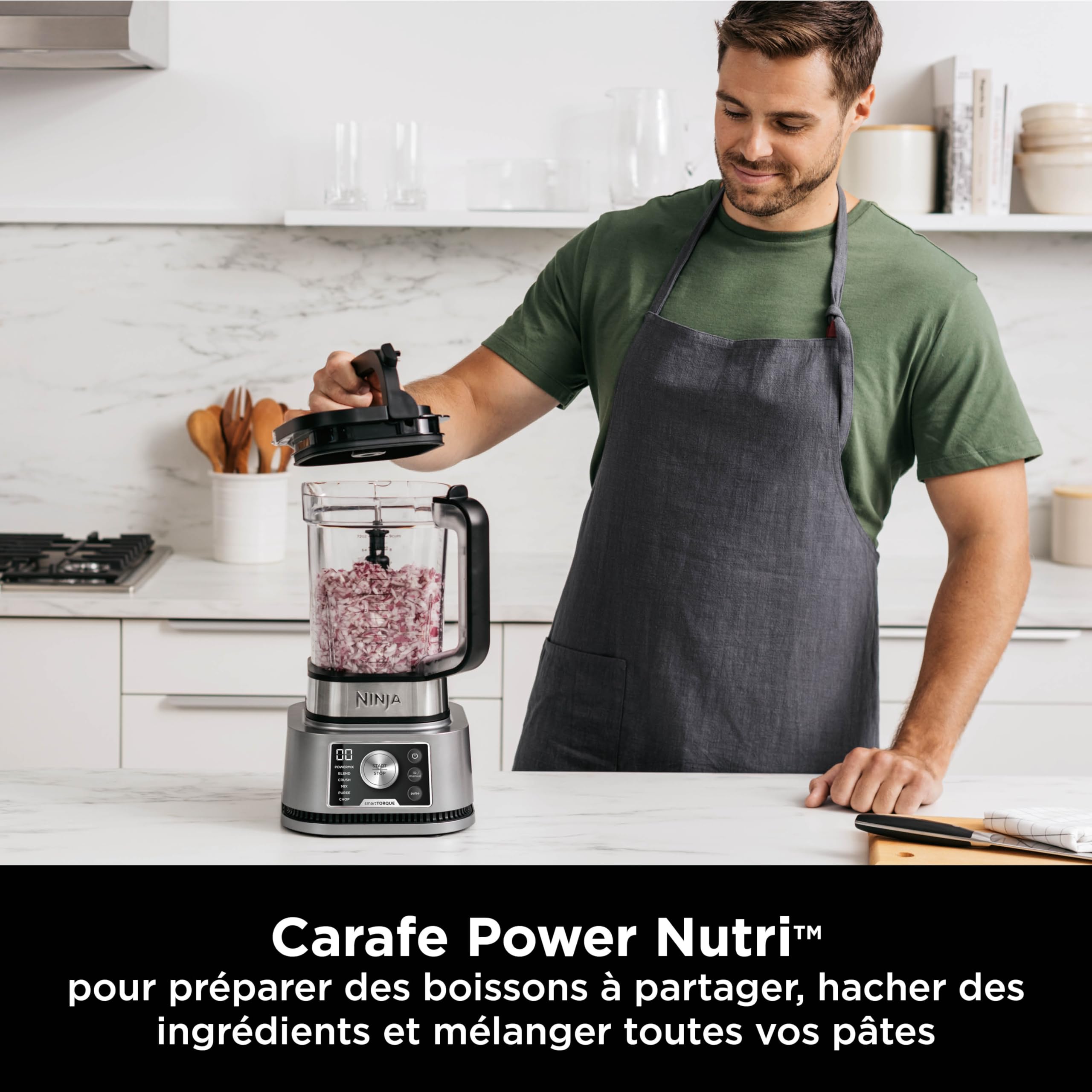 - 3 APPAREILS EN 1 : Créez des textures plus épaisses dans le bol de 400 ml, mélangez des boissons et des sauces dans le gobelet Power Nutri, et utilisez la carafe Power Nutri pour hacher et mélanger. Lavables au lave-vaisselle